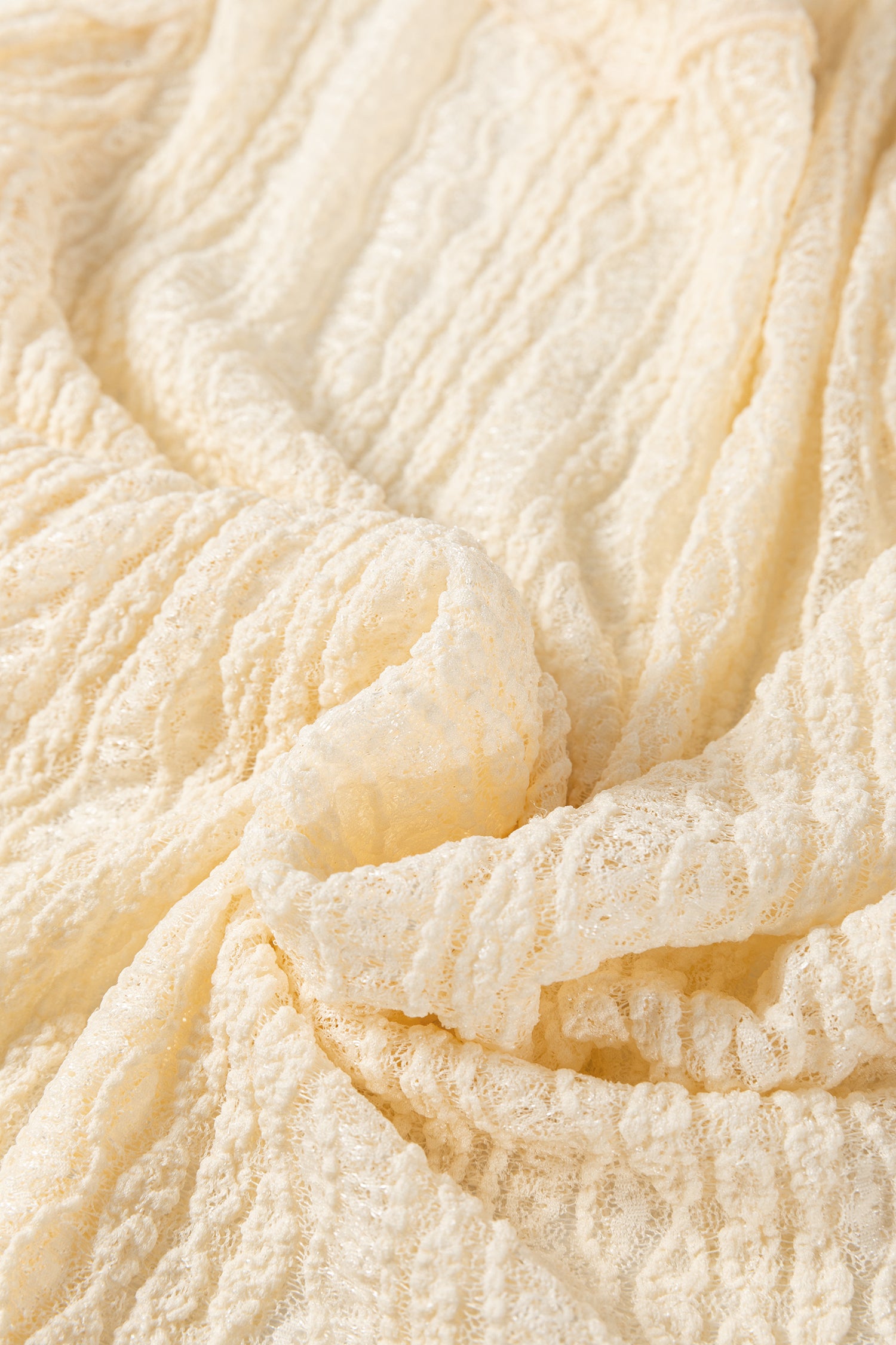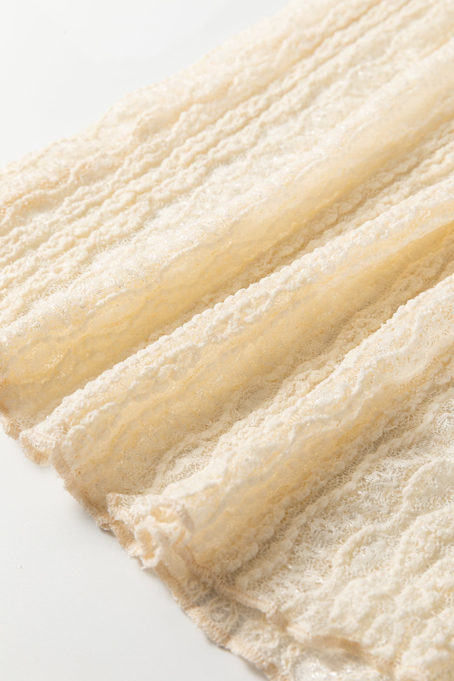 Apricot Flounced Long Sleeve Mock Neck Sheer Lace Top