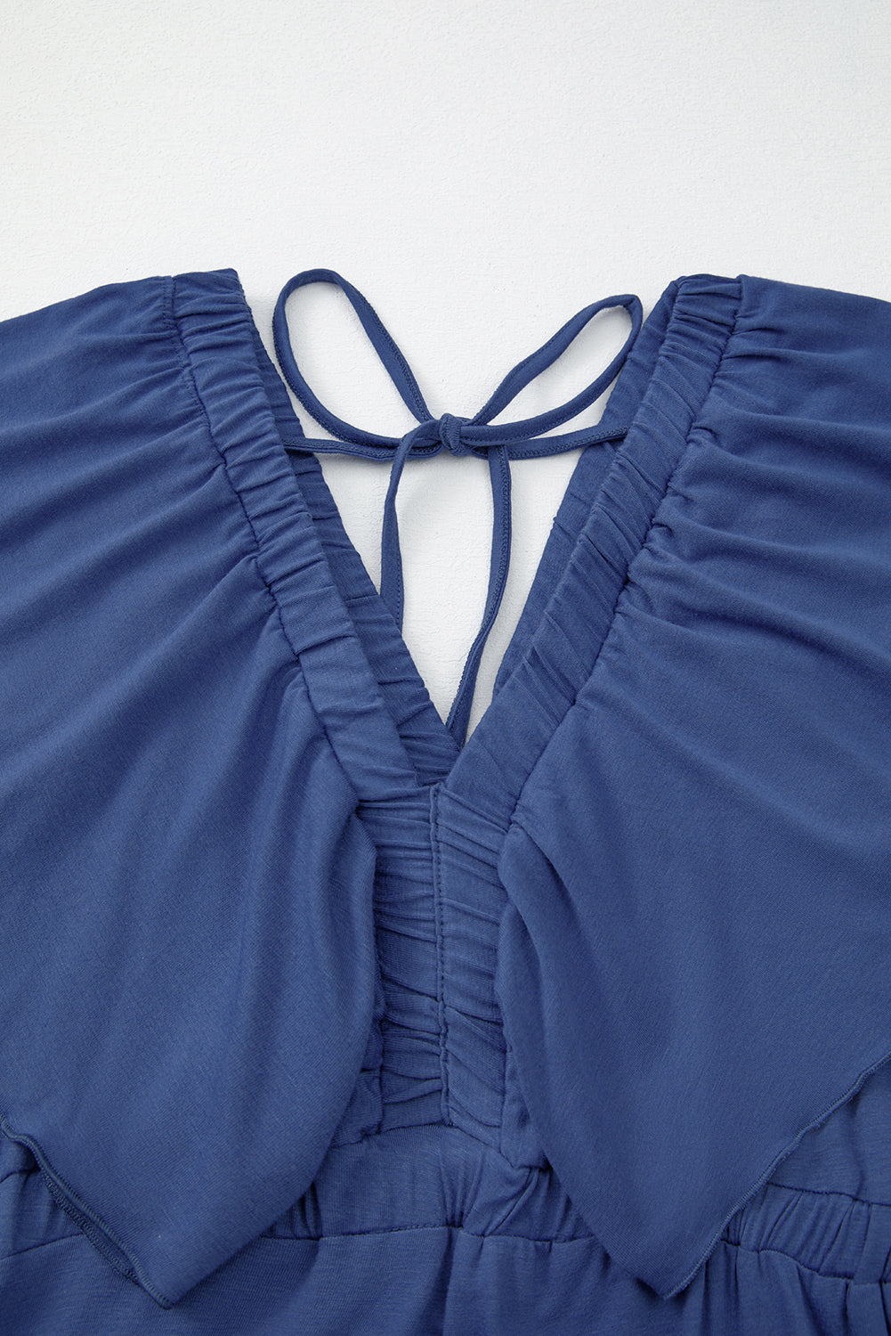 It has flutter sleeves, tiered skirt, finished with a ruffle hem.