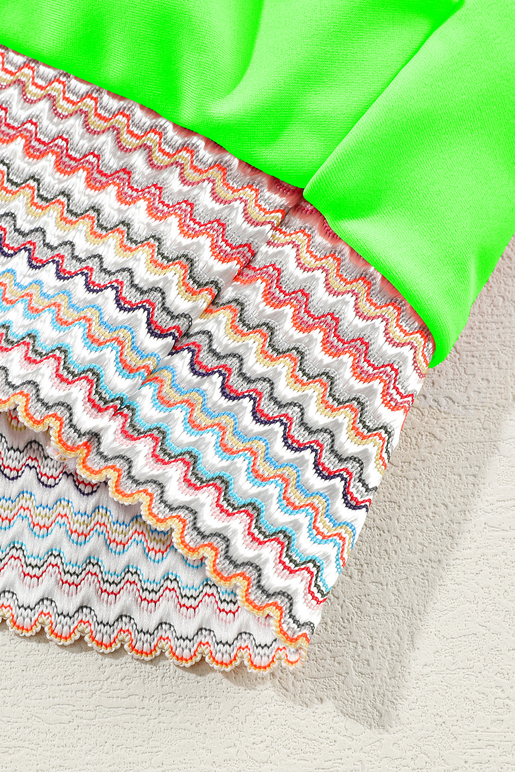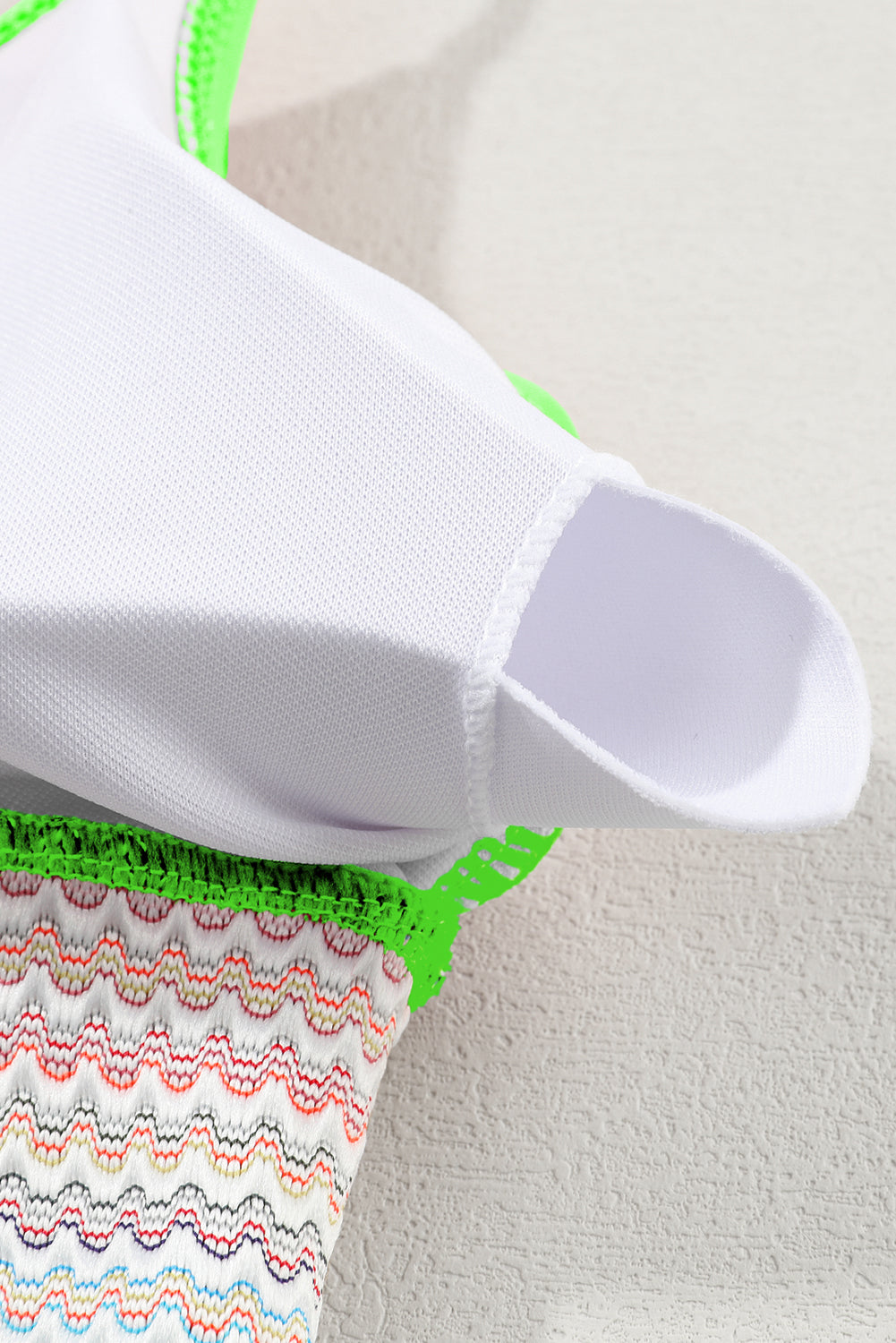 Green Striped Patchwork Spaghetti Strap High Waist Bikini Swimsuit