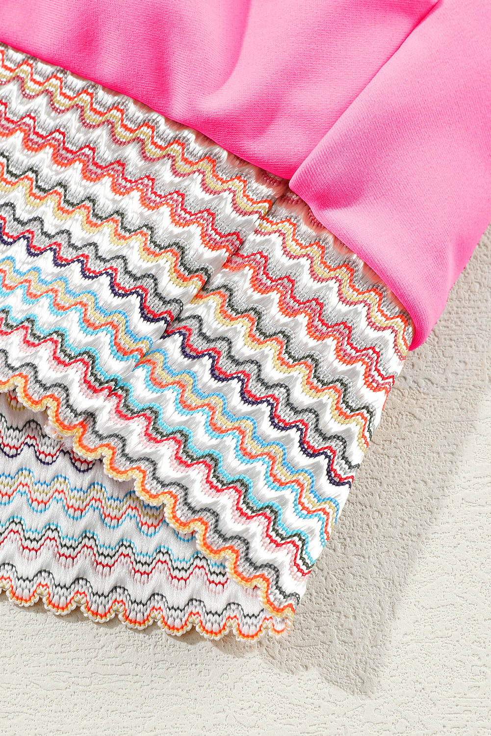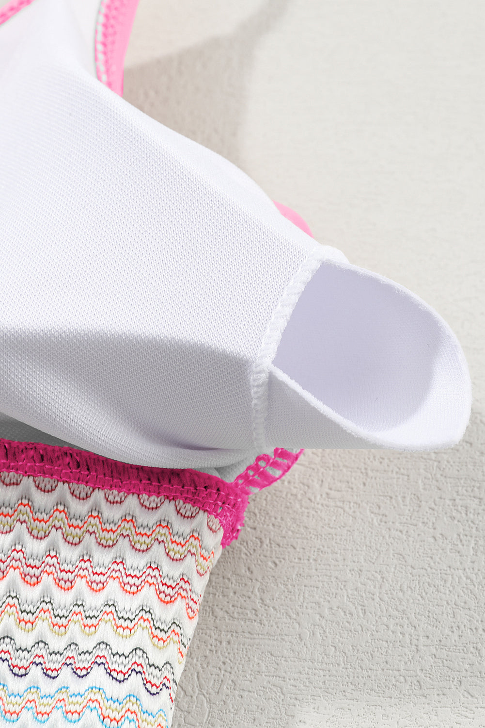 - With its unique striped patchwork design, the swimsuit is very trendy and chic