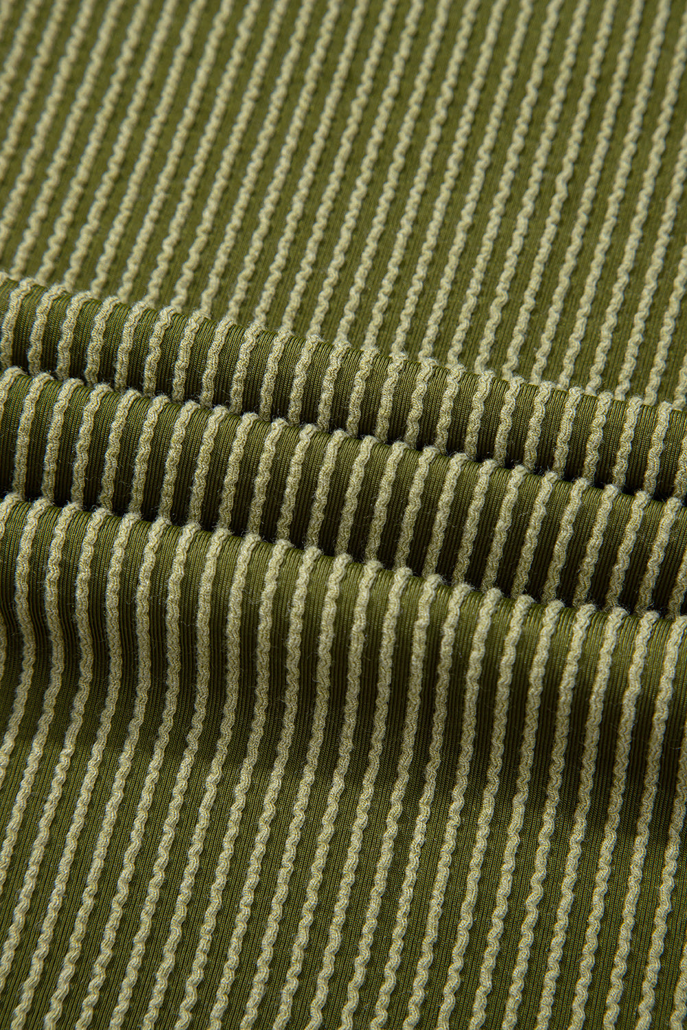 Jungle Green Textured Knit Exposed Stitching T-shirt