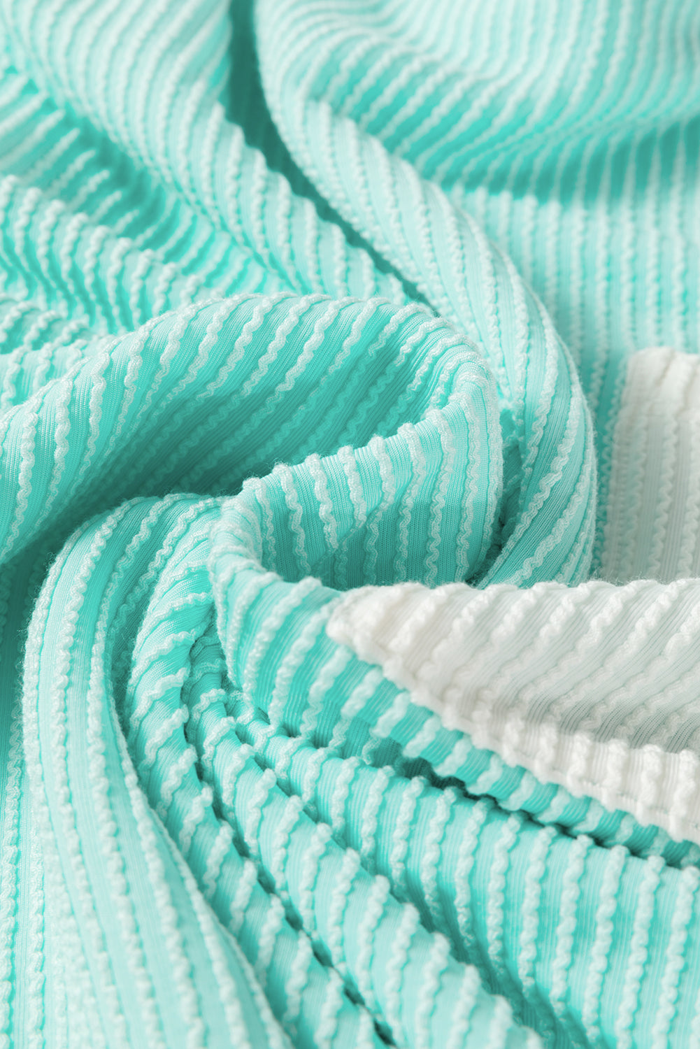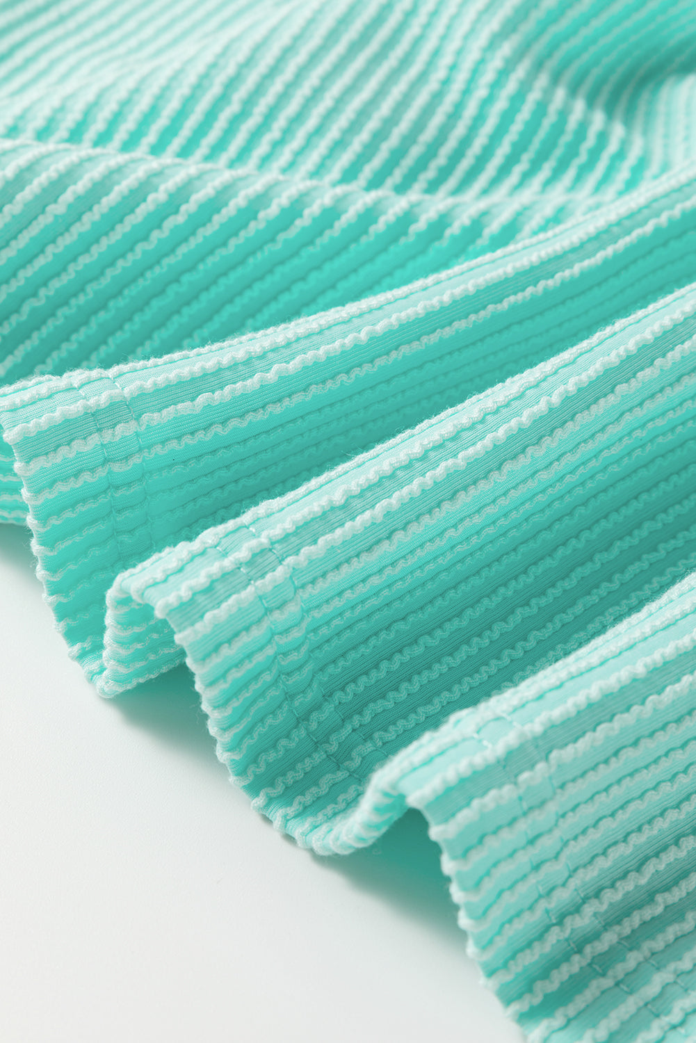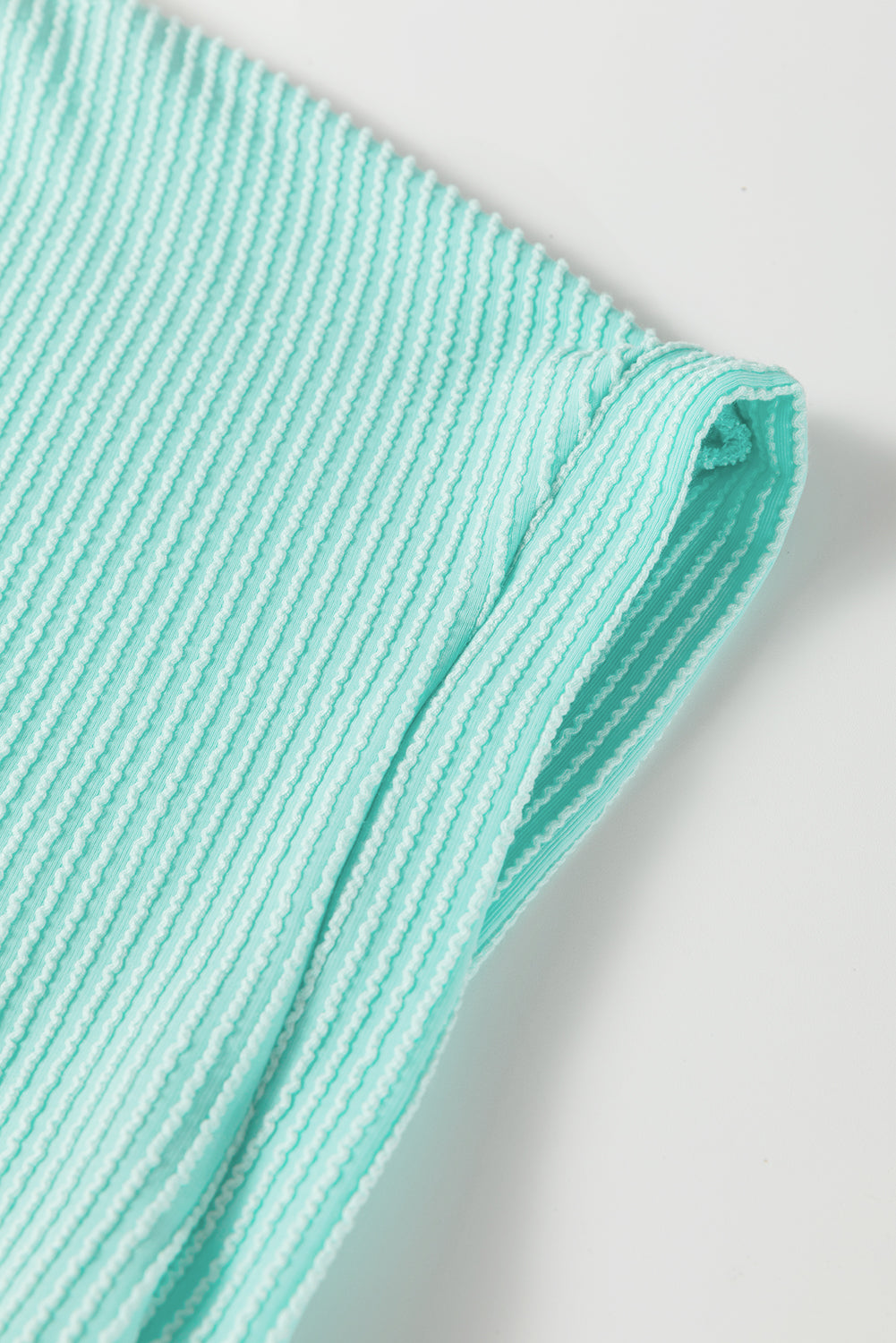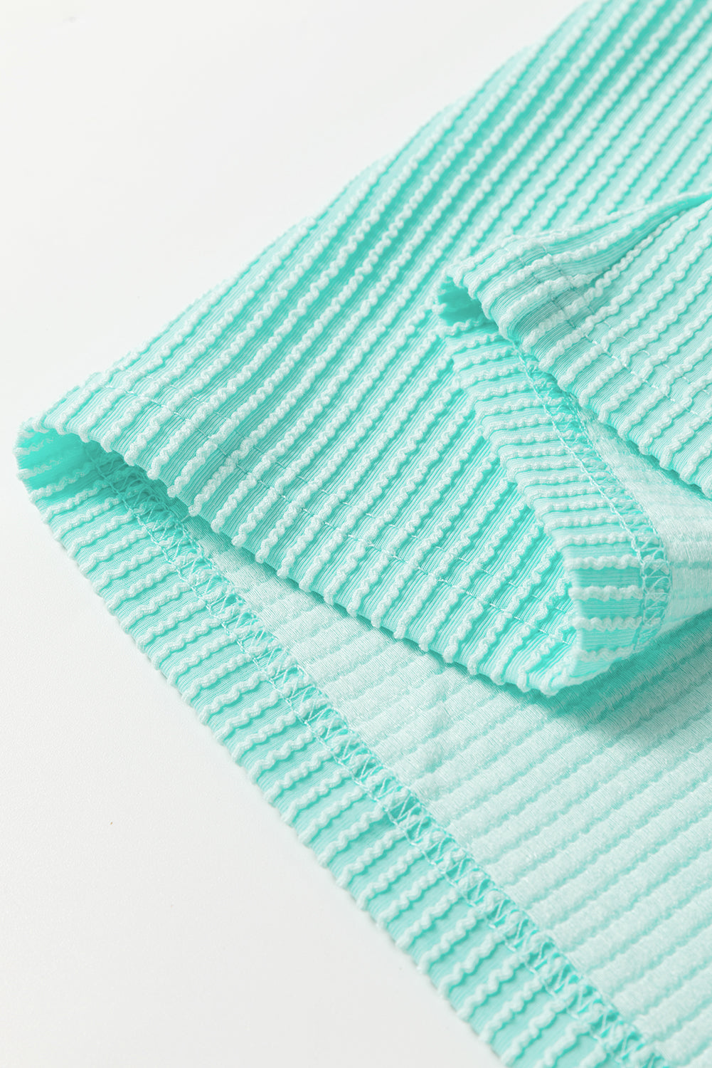 Light Blue Twisted Rib Contrast Pocket Knit Crew Neck Plus Size T Shirt