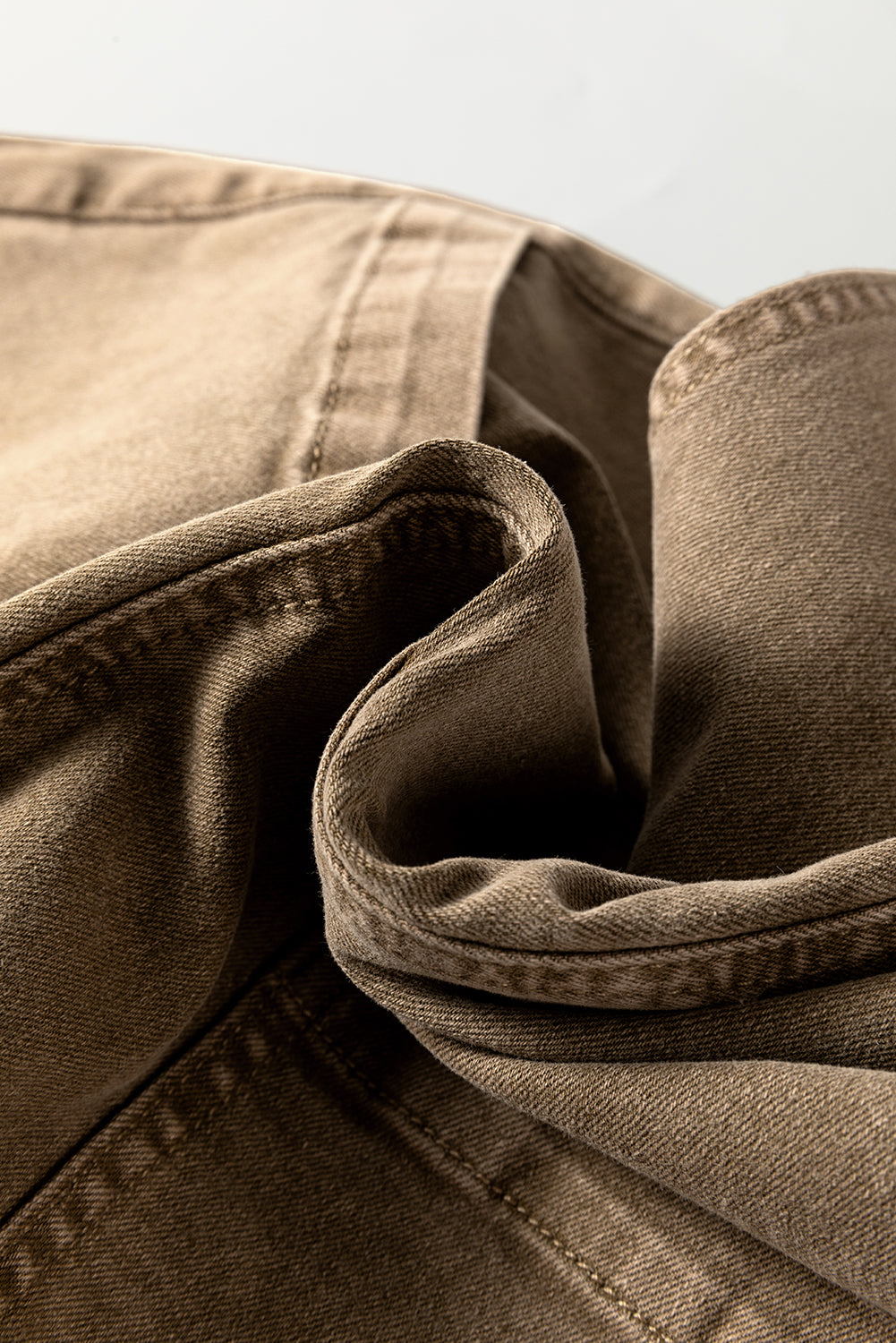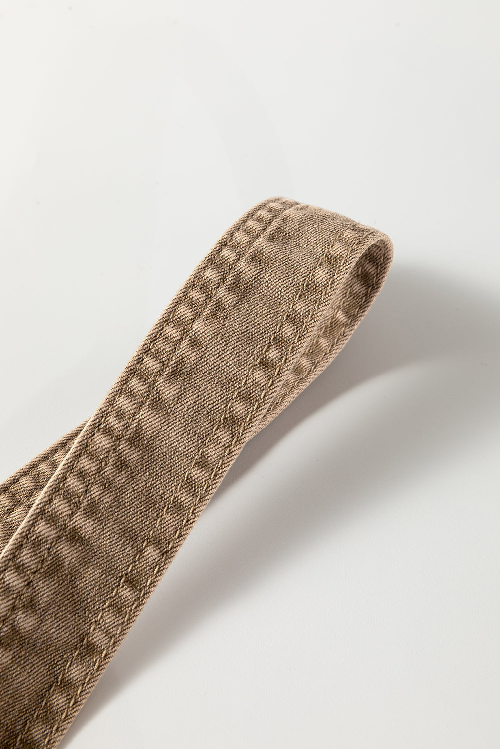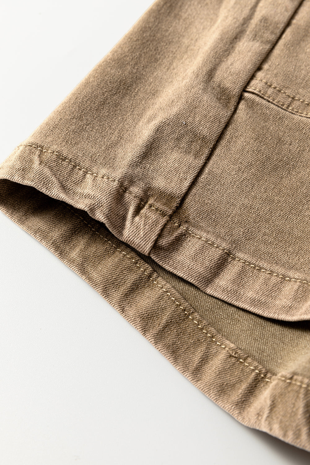 Light French Beige Solid Color Knot Straps Denim Romper with Pockets