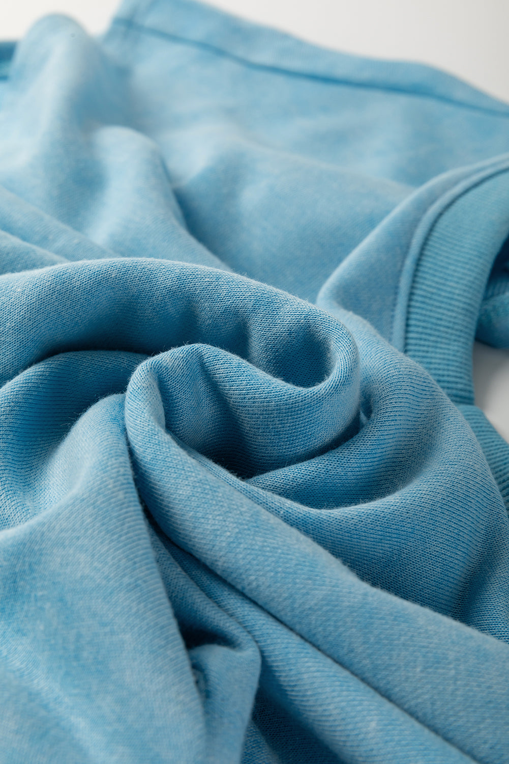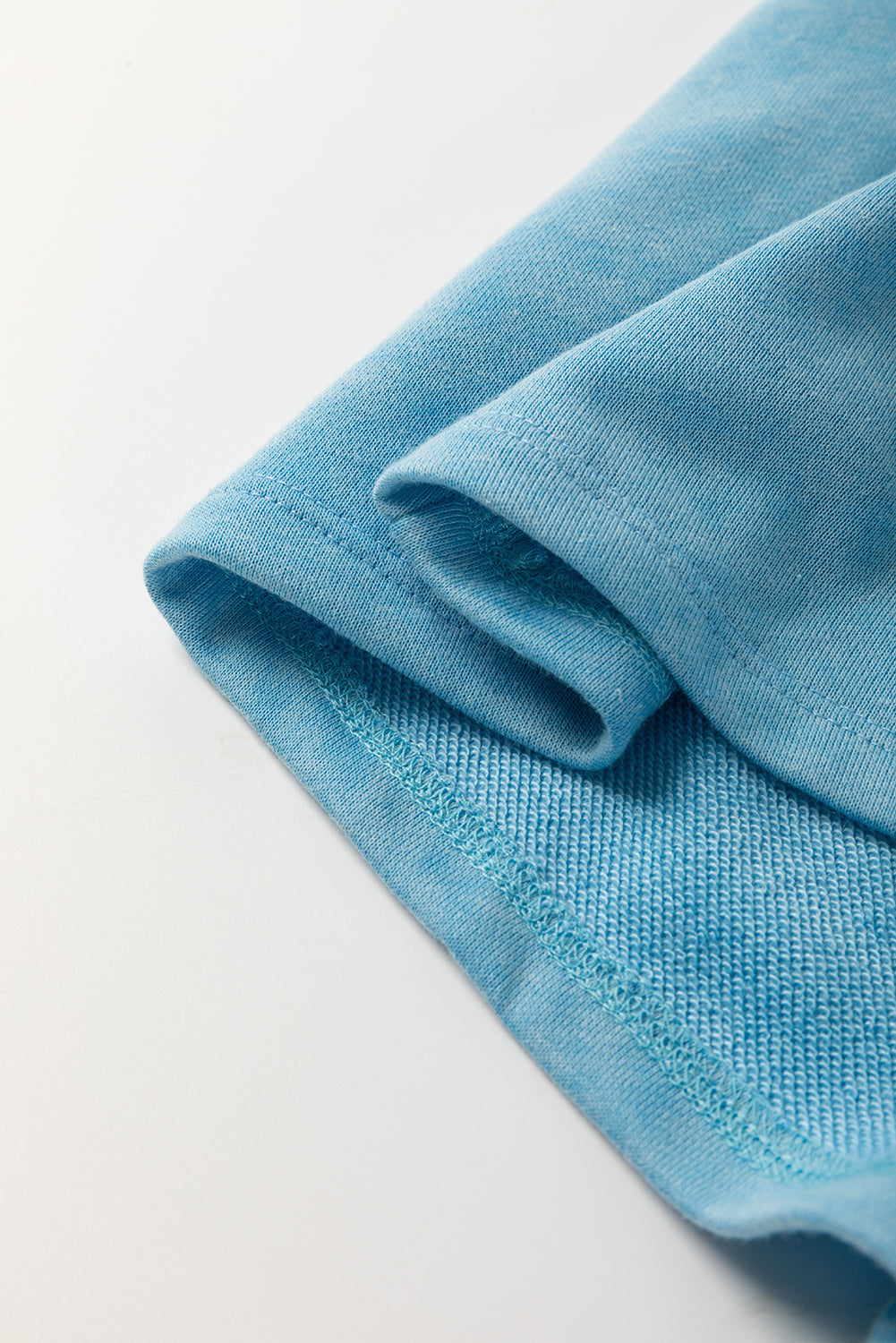 Mist Blue Mineral Wash Drawstring Waist Hollow Out Back Short Sleeve Romper