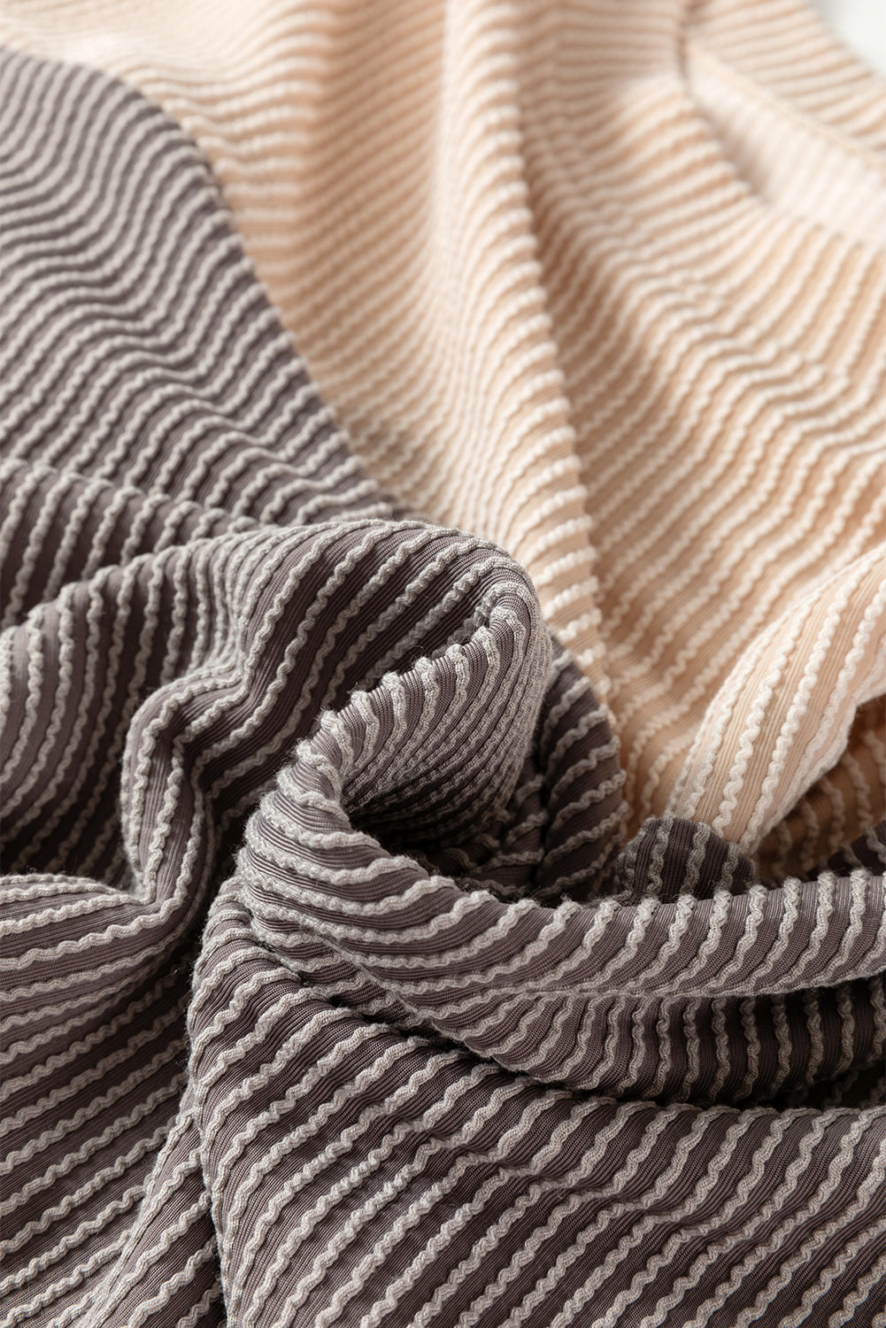 Multicolor Color Block Long Sleeve Ribbed Loose Top