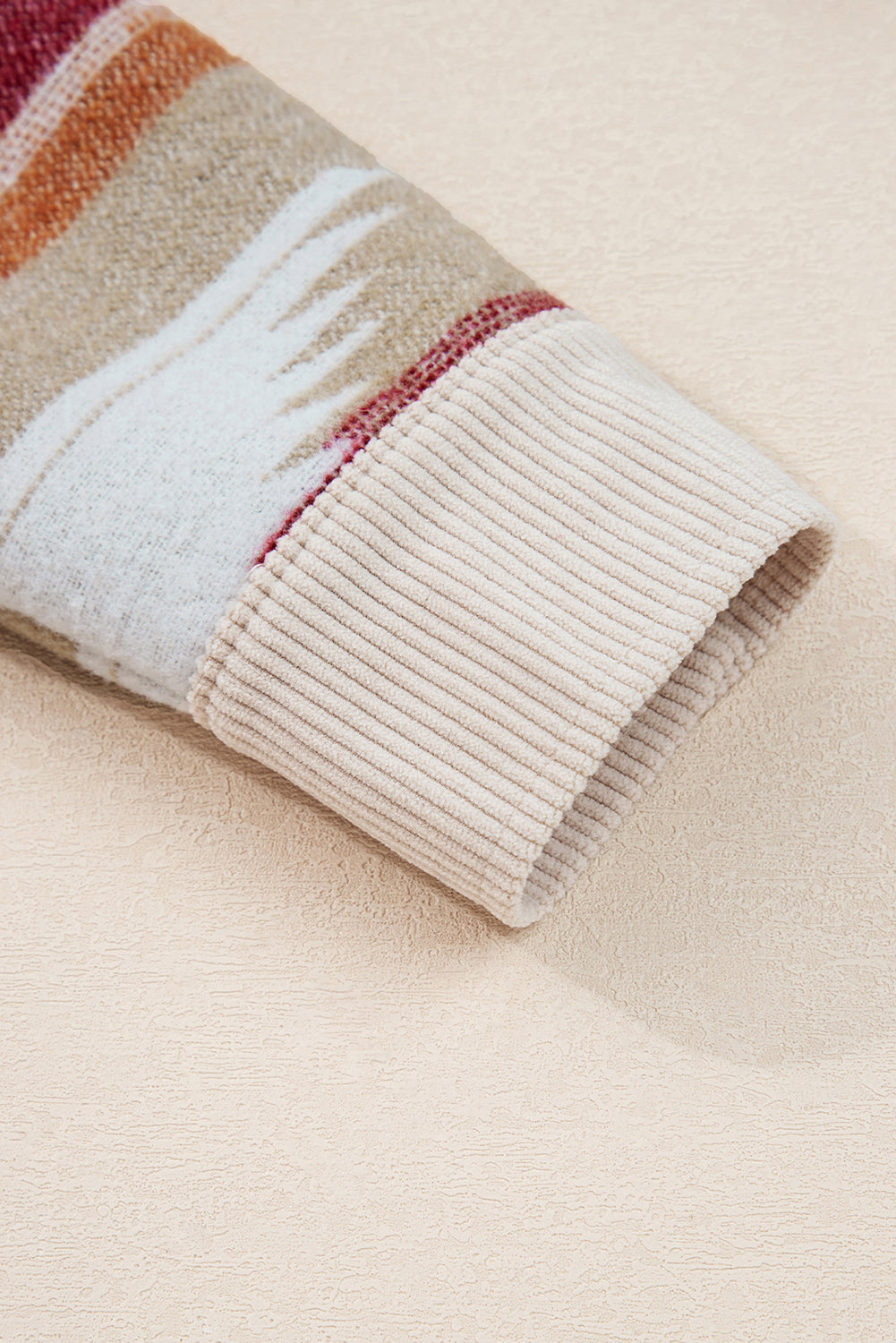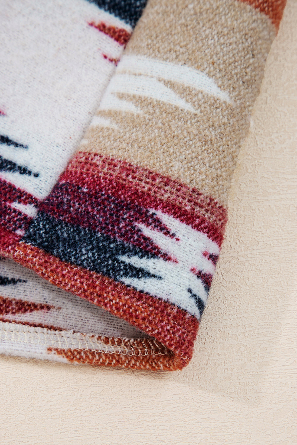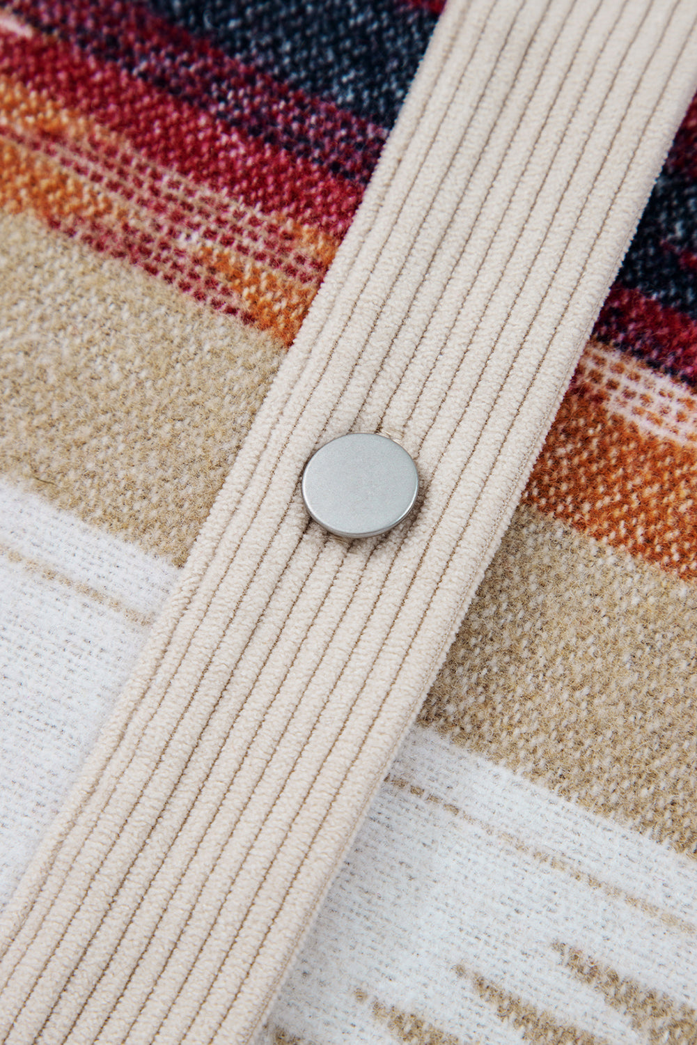 Multicolour Western Aztec Striped Patchwork Double Flap Pocket Raw Hem Shacket