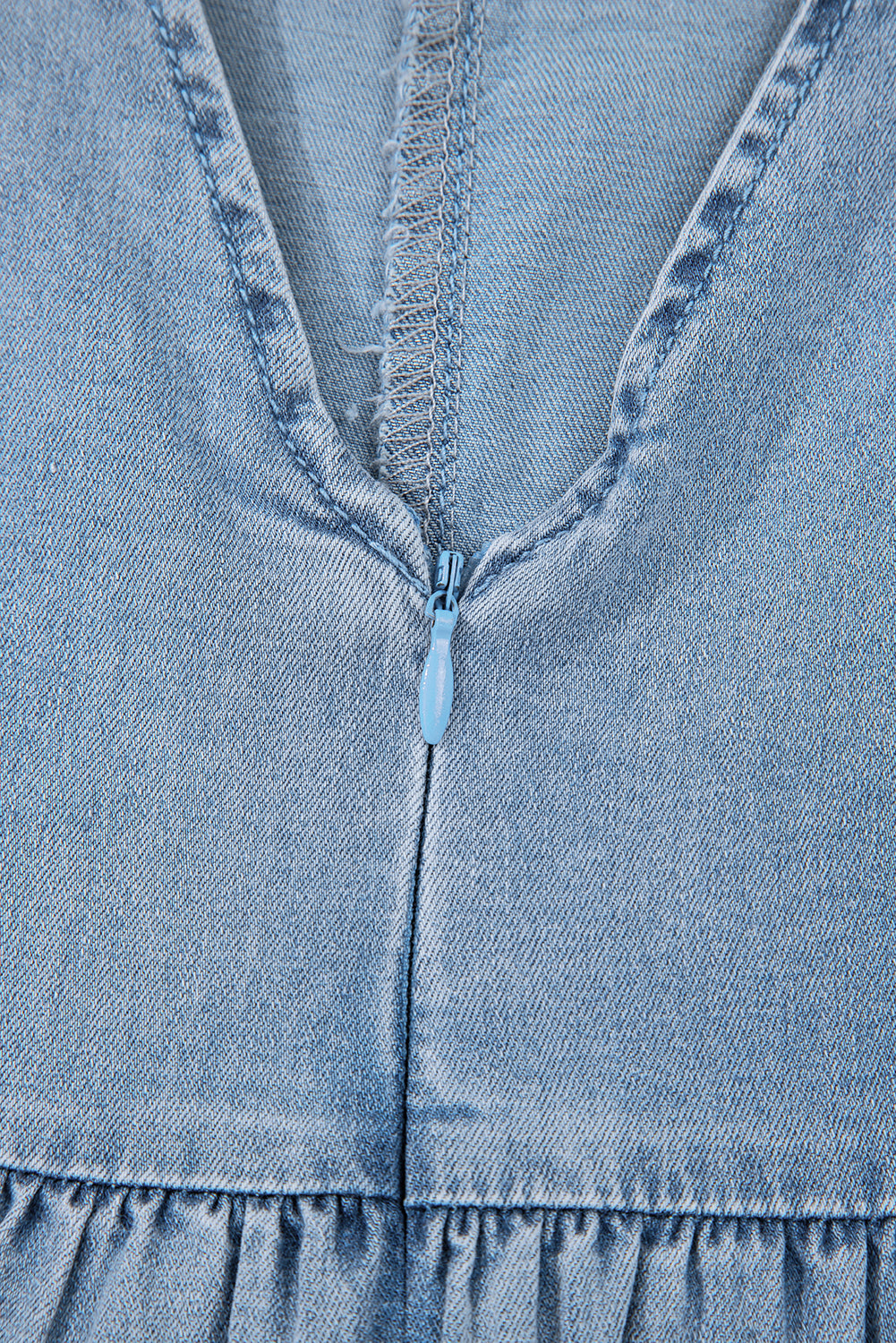 Myosotis Square Neck Bowknot A-line Sleeveless Denim Dress