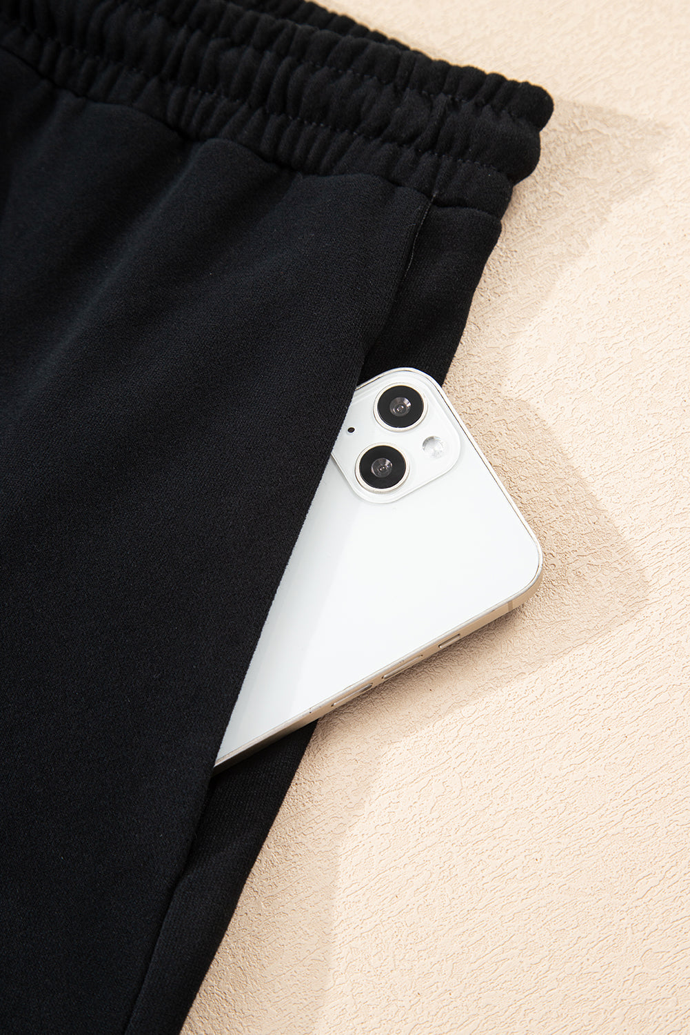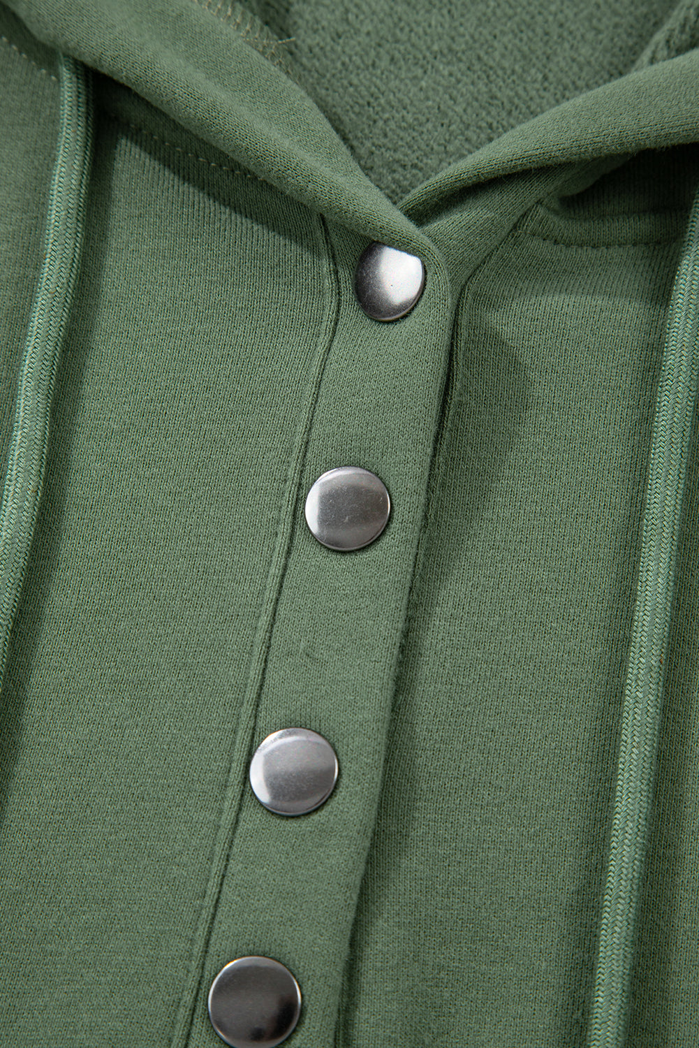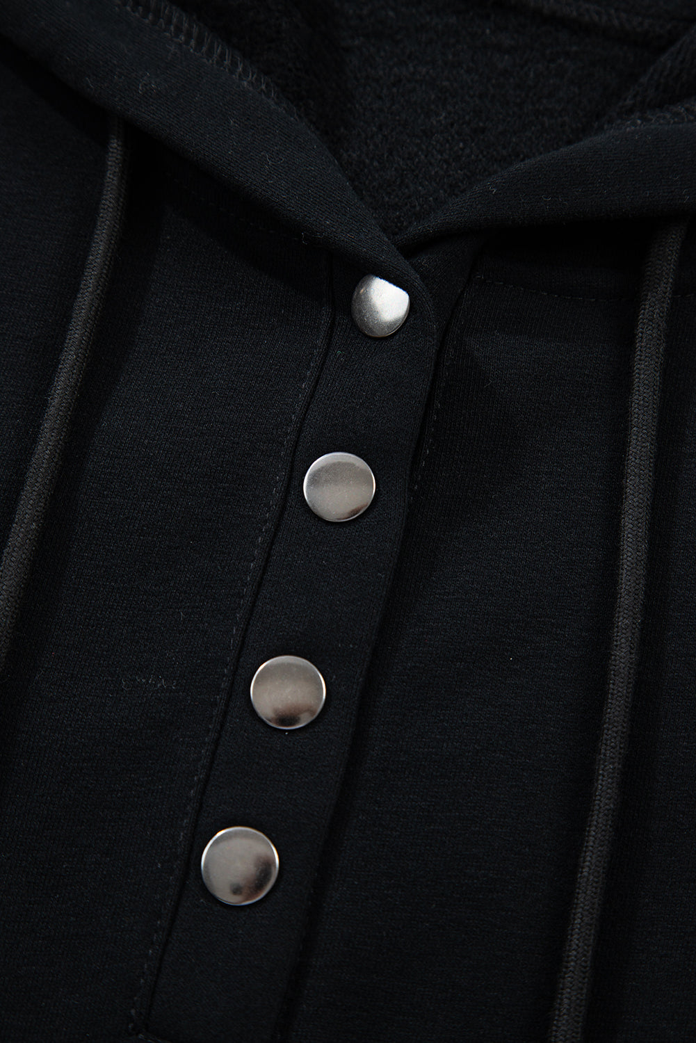 Navy Blue Button Drawstring Hooded Pullover and Casual Short Set