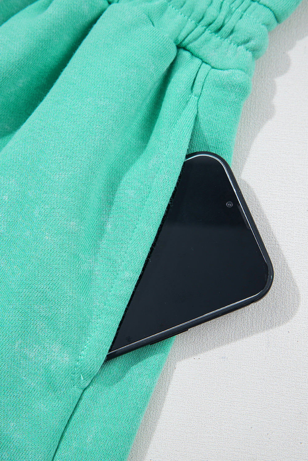 Sea Green Mineral Wash Drawstring Waist Hollow Out Back Short Sleeve Romper