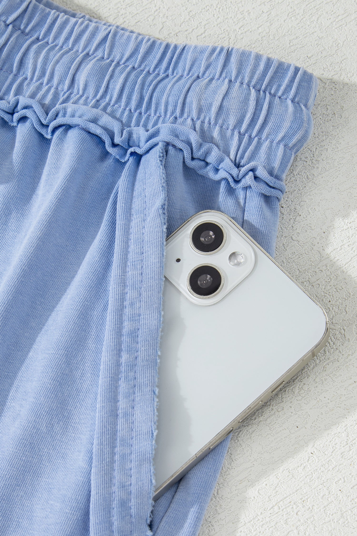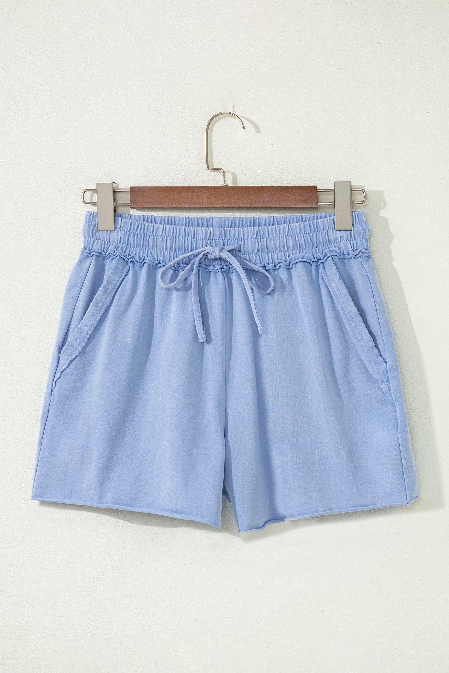 Sea Green Mineral Washed Drawstring Elastic Waist Raw Cut Shorts