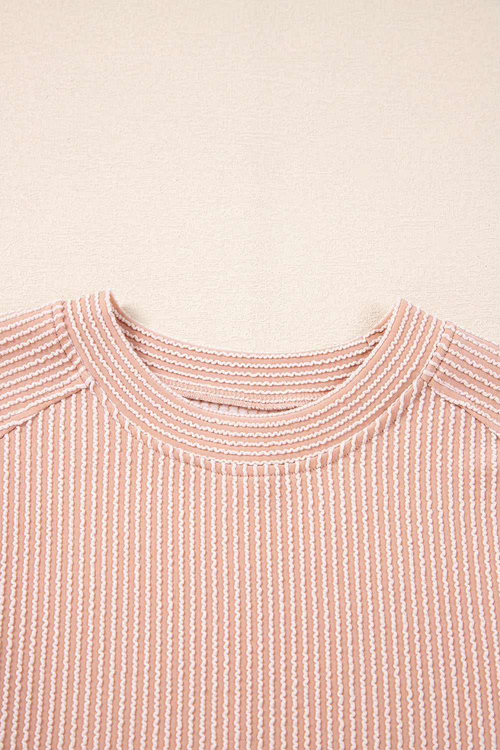 Smoke Gray Solid Corded Knit Short Sleeve T Shirt and Wide Leg Pants Set