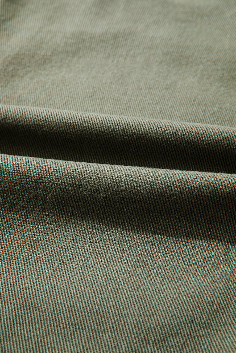 Smoke Green Patched Pocket Collared Button Front Boyfriend Denim Jacket